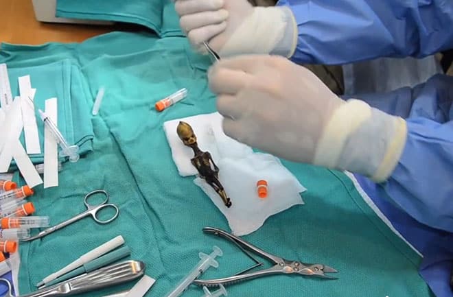 Recentemente, um grupo de pesquisadores fez exatamente isso. Lançou um documentário intitulado Sirius onde mostra uma bateria de testes feito em uma figura com feições humanoides recolhida supostamente no deserto no Atacama, 10 anos atrás.