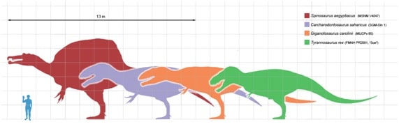Tyrannosaurus rex foi um dos maiores carnívoros terrestres de todos os tempos sendo o quarto maior teropode registrado até então, ficando atrás das espécies (fig. A.1) Spinosaurus aegyptiacus, Carcharodontosaurus saharicus e Giganotosaurus carolinii.